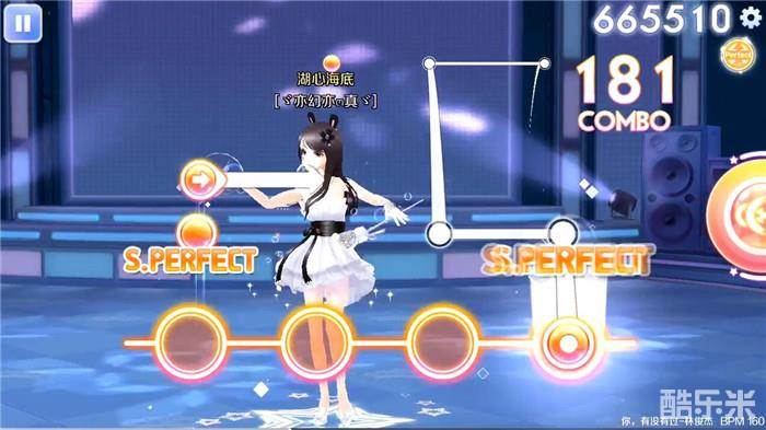 在这首《你,有没有过》的副歌部分,音符更加密集。左手单击音符与右手长按音符同时开始,在右手长按转折音符的同时,左手边出现单击加快速滑动音符、两个单击音符加快速双连击音符的操作变化。另外右手边双连击然后接长按音符也是需要大家注意的,在如此快速并且密集的音符组合下,一定要看清音符的数量与形式,不要错把第三个长按音符当做单击音符而过早松手。