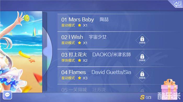 在新专辑“初夏微风”中,游戏为大家准备了十首歌曲,依次通关即可解锁下一首歌曲。在这里大家不仅可以体验到不同模式玩法,还可以感受到不同难度、不同曲风带来的音乐盛宴;难度从低到高,操作也由简入繁。在这个新专辑中,最容易的歌曲是陶喆的《Mars Baby》,作为星动模式难度1星的歌曲,这样的挑战相信对于大家来说都是小菜一碟!