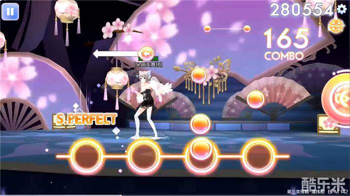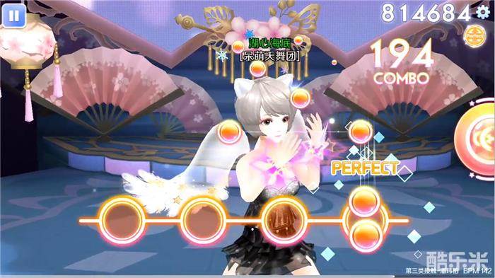 在歌曲快要结束时,我们会遇到一波快速下落的单点音符组合。在这段组合中,我们需要右手快速单击三次后双手同时完成一个并列音符。但是这还没有完,紧接着有是一道快速的阶梯状下落音符。在这段音符操作中,最重要的是要找准音符的“主线”。比如在一串连续的音符中,它的“主线”是一个斜向的阶梯单点音符组合,但是在操作的过程中还会遇到其他额外的单点或者并列单点的音符来打乱我们的操作节奏;这时,只要心中知道“主线”的路径,那么就不会因为额外的操作而手忙脚乱;整体音符落点“套路”,我们心中也就一清二楚了。
