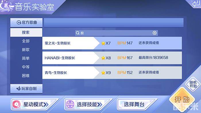 QQ炫舞手游中目前收录了生物股长3首歌曲,3首歌曲都带有轻摇滚的元素,并且歌曲的难度都非常的高,其中最简单的一首《萤之光》难度也达到了7星。由于难度过高,所以一般玩家也很难遇到这些歌,如果你喜欢《死神》《火影忍者》这些动漫的话,可以在解锁事务所中的音乐实验室之后、休闲大厅后,来搜索选择歌曲挑战。