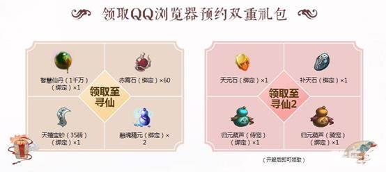 凡预约寻仙2的仙友,在2018年7月31日前,只需下载QQ浏览器,登陆官网界面,便可领取新寻仙与寻仙2的双重礼包,礼包单Q限制领取一次,请仙友记得慎重选择大区与角色信息~