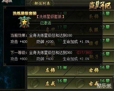 因此各位小伙伴如果洗炼到高星但不是自己想要的属性也可以先保留着噢,待精炼满了再用攻击属性替换掉d=====( ̄▽ ̄*)b,而且星数高的洗炼属性还能用来激活星级套装,一举数得噢。