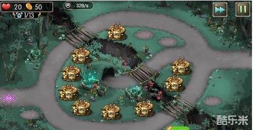 1、初始布局如下,中间的圆圈布满9个初级箭塔;
