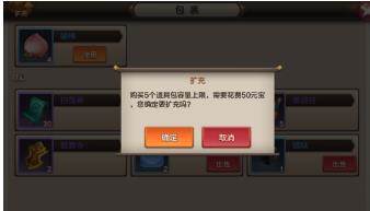 玩家在游戏中,只需要点击进入包裹图标中,在屏幕左上方有一个扩充按键,点击之后就会提示玩家是否进行扩充操作,扩充只需要50元宝。