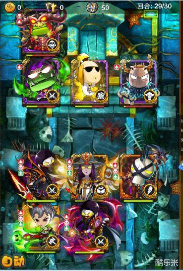 因为头一次打,我还是延用了之前的老杜阵容,很明显的发现对方卡牌的防御生存能力明显提升了,而攻击力却很普通,新版本中只要坚持到30回合没被灭就算胜利,似乎蛮简单的,如果真这样混混也没有必要写这个帖了,让我们往下看。