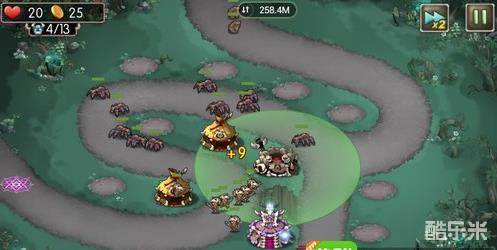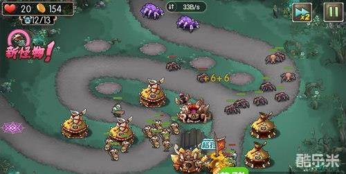 2、炮塔周围继续再放个勇士塔,将怪物都聚集在两个炮塔周围,同时炮塔升级到到3阶;
