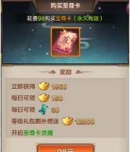 至尊卡需要玩家花费98元人民币即可获得,同时购买之后永久生效。