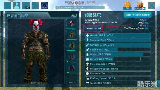 2、打开tames统计界面,这里有个XX/40的,我们最高只能带40头恐龙,开头数字是你拥有的恐龙数量,可以先清点一下,确定你的龙是不是活着(所以抓完恐龙给它取个好名字很重要,好辨别)。
