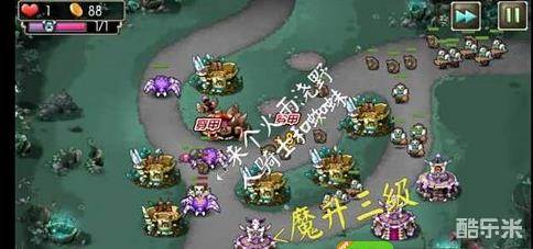 2、将终点处的法师塔升级到3阶,如果蜘蛛和骑士快闯过最后一道防线,及时用流星火雨解决掉;