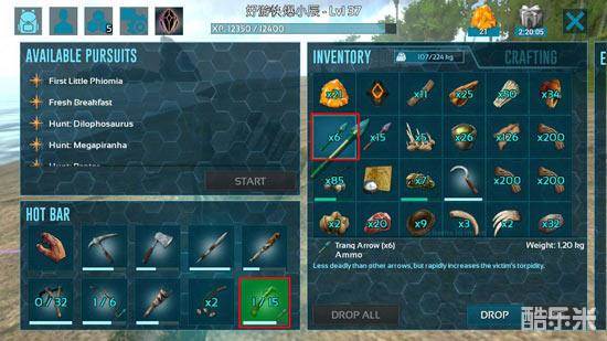 麻醉箭可以在21级印痕解锁,制作需要1个石箭+1个麻醉药,麻醉箭主要效果是用来驯服恐龙的,平常的话,还是用石箭输出就可以了。
