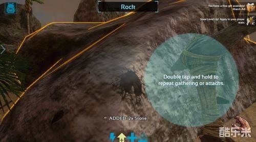 “石镐在手,天下我有”...哎不对~是矿石我有,手中有了石镐后,找到附近的石头(矿山)正面对着它,出现可采集(白色圆圈)提示后,点击圆圈即可开挖。