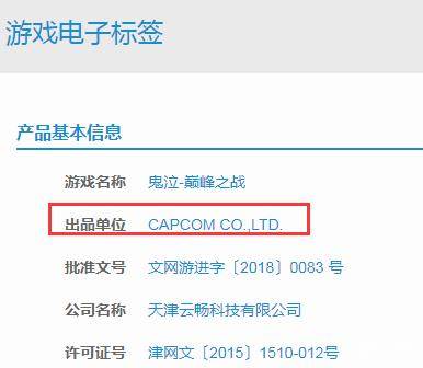《鬼泣:巅峰之战》产品信息,可以看到出品单位为CAPCOM: