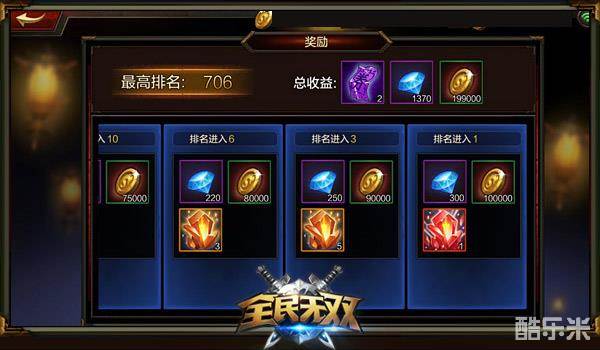 当我们成功升至自己历史最高排名,可再领取额外奖励。其中全服排名第一的人将能获得10万金币以及大量奖励;第二名有9.5万,第三名有9万金币。如此丰厚的金币奖励,当属于最强者。