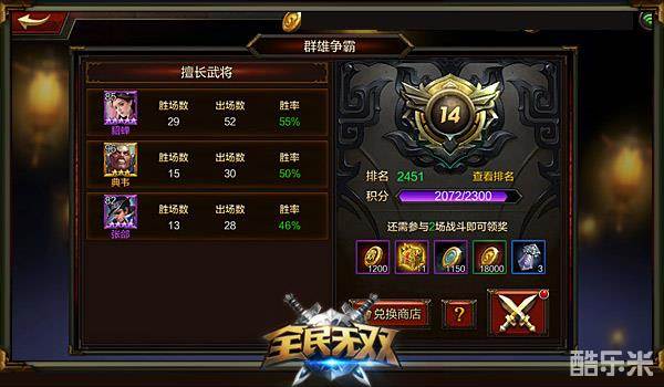 群雄争霸一共有25个段位,我们每战胜一次群雄争霸便可获得积分加成从而提升段位获取更多奖励。但是段位奖励的获取,要求我们保证每天都参与至少两次群雄争霸玩法。段位奖励包括大量的金币等,满足我们日常消耗。通关技巧有三: