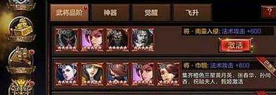 在将苑系统的武将界面,玩家可以看到武将头像、将苑名称、增加属性、激活条件和激活状态。当玩家拥有该武将时,将苑组合中的武将图像会以高亮状态显示,而在将苑组合激活后,将苑名称、增加属性都将高亮显示,并显示激活字标。未拥有武将或未激活将苑组合时,将苑组合仅以灰化效果展示。