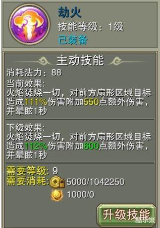 火焰焚烧一切,对前方扇形区域内敌人造成大量伤害,并眩晕敌人1秒。