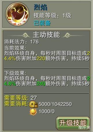 使烈焰环绕自身,每秒对周围目标造成伤害,持续5秒。