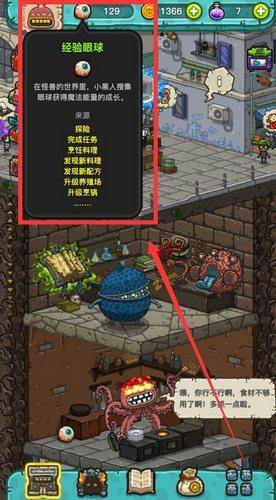 点击魔法眼睛,可以看到升级选项,经验眼球数量足够就可以升级餐厅。