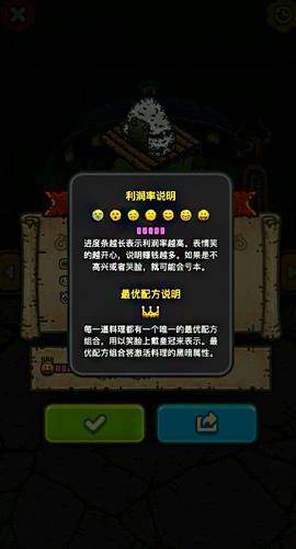 3.图标带着皇冠的就是最佳配方,每种料理只有一种最佳配方,而且研发出来后还能解锁黑暗属性。所以想办法解锁各种不同配方也是很重要的一环。
