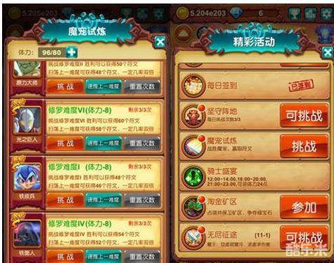 以上两个活动,一个是提升魔宠的最好办法,另一个是锻炼自身的最佳渠道,都是勇者们每天的必要环节。如果你不能坚持的完成每天的各项活动,那你拿什么来问鼎魔王大陆!当然只要大家持之以恒,总有一天你会发现这些活动会带给你数不尽的回报!
