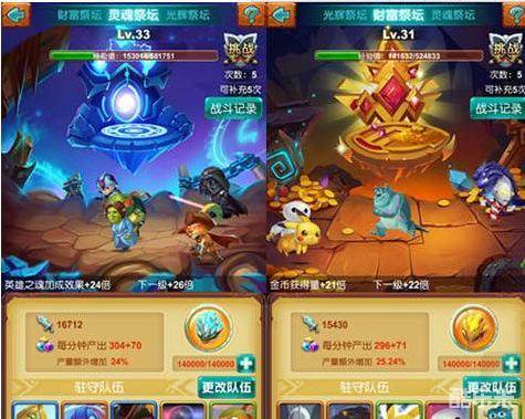 众所周知祭坛共有三座,分别是:财富祭坛、光辉祭坛和灵魂祭坛。所以勇者们研制出的增益图腾也是分别对应着三座祭坛。像炼金图腾是针对财富祭坛的金币收获量,巨魂图腾针对灵魂图腾的英雄之魂攻击力增加效果,凝光图腾针对光辉祭坛的圣光加护效果。可以说三座图腾就是完全为了服务三座祭坛而建造的。