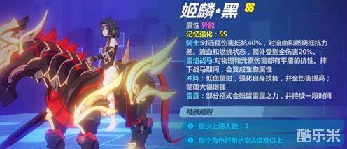 1.骑士型BOSS的特性,对远程攻击40%的抗性会导致绝大多数远程输出体系在姬麟·黑的铁蹄面前效果乏力。