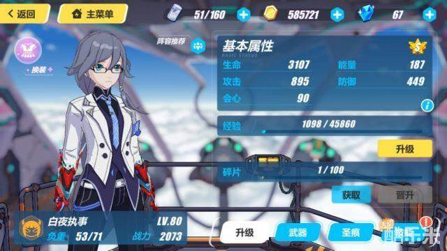 以上属性为80级、满训练所、50星云旋涡和50米开朗琪罗上、50猫乐队中、45猫乐队下圣痕状态下的属性。可以看出白夜的物理攻击成长很不错,防御也不低,是一个总体基础属性中上的角色。升到SS后还能再提高一些攻击力,词缀都是单攻击且比较低,如果达到双攻击+SS阶级,1000攻击应该不成问题。顺便,白夜也是个S成型的角色,A级白夜和最初的卡莲一样,打的花里胡哨,伤害感人肺腑。
