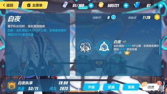 队长技能比较菜。加生命对于绝大多数场合都没用,深渊才稍微有点用;而爆伤方面,不提爆率都是假的,幸好白夜自己能提供不少爆率,至少比迅羽好多了。