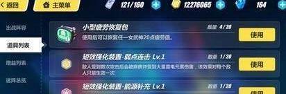 一次性道具方面,最重要的肯定是疲劳恢复包,其它道具在部分困难图情况下会有奇效(然而并没有太困难的图~)