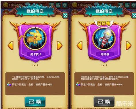 宠物可以为我们提供闯关所需要的属性加成,而作为默默跟随者玩家的侍宠,也有着不小的作用,那就是为我们提供祭坛收获加成的效果,不要小看这个加成,一旦有了这个加成,我们所获得收益将远远高于原来,而且侍宠所提供的加成是可以进行叠加升级的,当你重复获得一个侍宠时,该侍宠将会升级,从而提升属性!