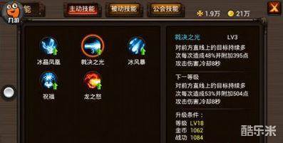 格斗之皇裁决之光解析法师必备技能。无论前期中期还是后期,这个技能是一定要记得升级的。这个技能本身单次威力并不算大,但是持续多次攻击,而且能击倒敌人,在怪比较多的副本或是竞技场PK中,用好这个技能会极大地减轻你的压力。