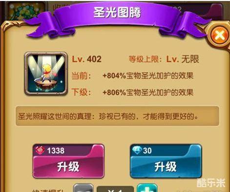想要让圣光得到增幅,最直接的就是唤醒“圣光图腾”,这个图腾可以直接的增加圣光的加护效果,使圣光带来的收益达到提升,最关键的是“圣光图腾”属于无级别限制一类,也就是说只要我们拥有足够的魂石,它将可以一直升级,一直提高圣光加护的效果,对大家培养圣光来说是必需品!