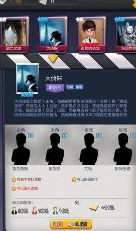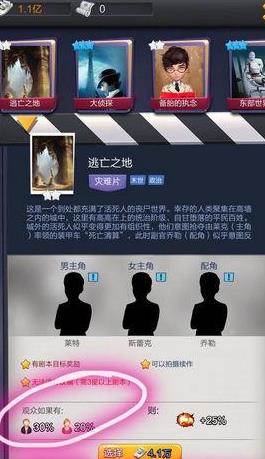 几百部电影拍下来,感觉剧本的星数和票房高低没有关系,有关系的第一,就是市场观众人数,打个比方,我要拍电影,下面有四个剧本可选,我打了个圈,上面是当前剧本需要观众,下面是现在的市场有多少观众,首选就是两个完全匹配的,因为市场人数越多,票房可能越高,就是可能说到这里还是再感叹下让人抓狂的系统。
