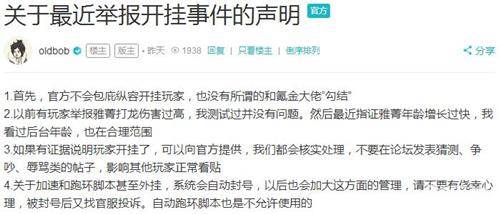 对于大家的质疑,游戏制作组组长老鲍勃表示:经后台数据查询,玩家“雅菁”的各项数据均为正常值,年龄增长也在合理范围内,目前没有开挂行为;如其他玩家仍有疑虑并有确凿证据,欢迎联系客服提提供资料,切勿在论坛发表煽动性言论的帖子,影响他人阅读体验。另外,游戏官方坚持对外挂的零容忍态度,一经发现立刻封号;也请诸位玩家不要存有侥幸心理,切勿相信他人提供的“便捷服务”,否则造成任何后果官方一概不予处理。