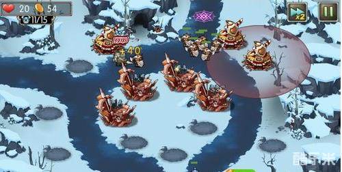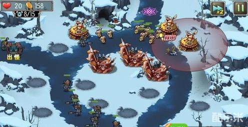 4、中间圆盘左侧同样再放一个狙击塔,散弹技能升满。然后把勇士塔升到2阶!