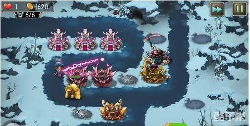 1、开局如下,主要集中中路和上路,1座勇士塔,2座3阶箭塔一座初级箭塔,1座2阶法师塔,还有一座弹射炮灵塔。出怪之后,升级初级箭塔,左侧上路布局再布局法师塔;