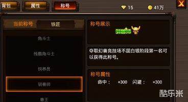 格斗之皇驯兽师称号是夺取幻兽竞技场不屈服白银阶段第一名可以获得这个称号,格斗之皇驯兽师称号对于一般的玩家来说有点小难度。驯兽师称号加命中加闪避属性!
