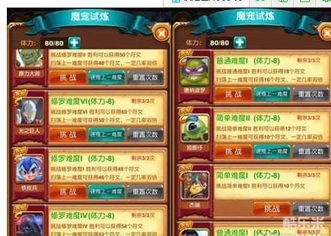 当大家通过骑士盛宴领 取完体力后,这些体力可以让大家尽情的体验魔宠试炼的快感!从而进一步提升自己魔宠的品质!当然了,大家在挑战魔宠试炼的时候一定要选择好自己要培养的魔宠伙伴~不要将体力浪费,最关键的是,一定要先进行挑战,当达到瓶颈的时候,在进行扫荡,不要一上来就一味的进行扫荡,这样获得的魔宠符文将会少的可怜!