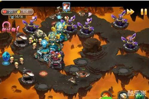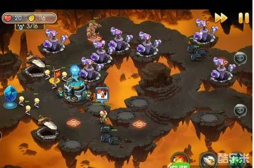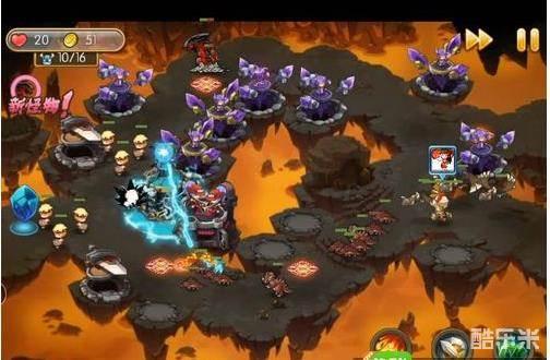 1、初始布局如下,终点处一个雷霆炮塔,上路一带放置5个初级法师塔。出怪后,在终点两侧放2个勇士塔,同时继续布局法师塔;