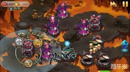 2、上路箭塔升级为狙击塔,狙击技能升满。上方的三个法师塔升级到3阶,下路终点前3个勇士塔升到2阶之后,狙击塔旁边的法师塔升级为幻影塔。然后在雷霆炮塔左侧新建一座法师塔;