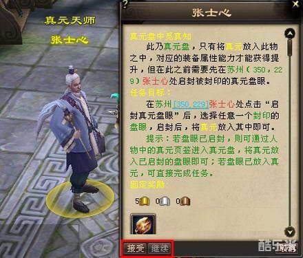 在苏州张士心处领取任务,领取任务后,通过真元盘界面,通过消耗任务二奖励的真元精粹。