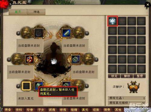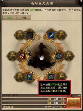 点击任意真元盘未启封,激活盘眼。