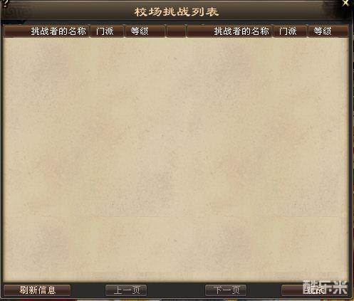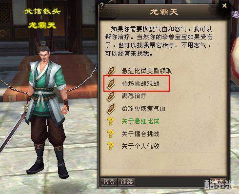 所有玩家可通过NPC洛阳(185,336)龙霸天通过“校场比武副本列表”界面进入校场,查看当前正在进行的比赛(包括新开发的悬红比试)。