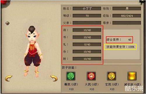 孩子的技能效果将直接对角色属性进行加成(初始100%加成,受综合素养影响提升,见后文)。