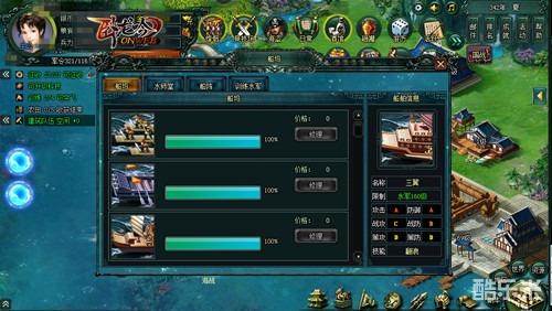 主城在130级的时候开放海港。观落叶因以为舟,见窾木浮而知为舟,最早我们建造的是竹筏,之后船舶的建造和修理都是在船坞中进行的。武将的水军等级在0级的时候就能够使用竹筏,随着水军等级的提升,可以驾驭的船只也就越大型,比如艨艟,楼船,桥舡,突帽,艅艎,走轲,斗舰,三翼等。