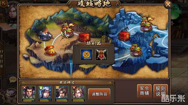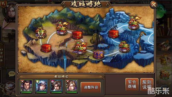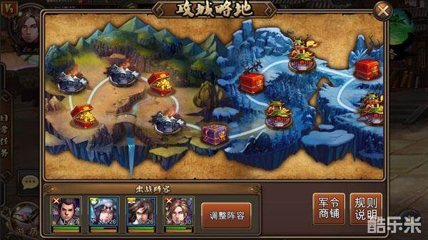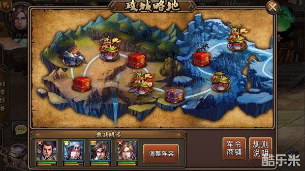 每个城寨的图标就是一个需要争夺的据点,点击就可以看到敌人配置并开始战斗