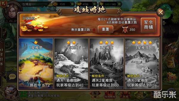 本次版本新增了一个攻城略地系统,由弱到强地安排与你目前等级可以匹配的真实玩家队伍进行切磋,给不满足于剧情关卡难度的高手们一个考察队伍综合能力的实战演练场,同时也可以通过内置的军令商店用军令兑换各种稀有道具。