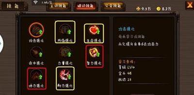 2、被动技能加点:图中红色为重点加,黄色为次要加。