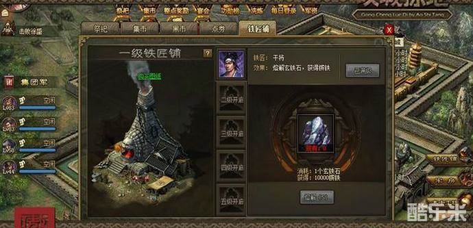 世界铁矿除占领获得镔铁外,还额外增加了新功能,每小时产出玄铁石,获得的玄铁石还可以通过铁匠铺熔解获得大量镔铁!达到103级,通过点券升级铁匠铺到2级,还可开启新功能!熔解宝物产出镔铁;3级铁匠铺还可熔炼3星以上紫装获得大量镔铁!真正“变废为宝”!铁匠铺一共分五个等级,而铁匠也是分等级的。使用金币即可升级铁匠,熔解时更可额外获得镔铁。