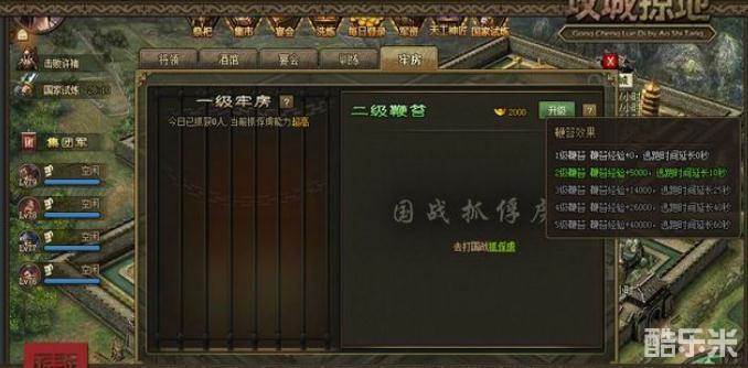 等级达到81级击败“于禁”,即可在点券商城购买一级牢房图纸开启牢房功能,国战杀敌有几率俘虏敌军,立即鞭挞即得经验!